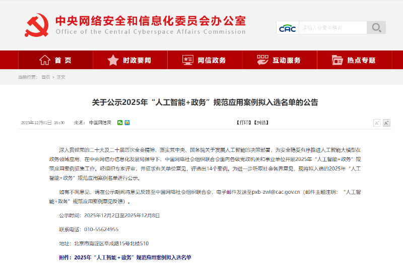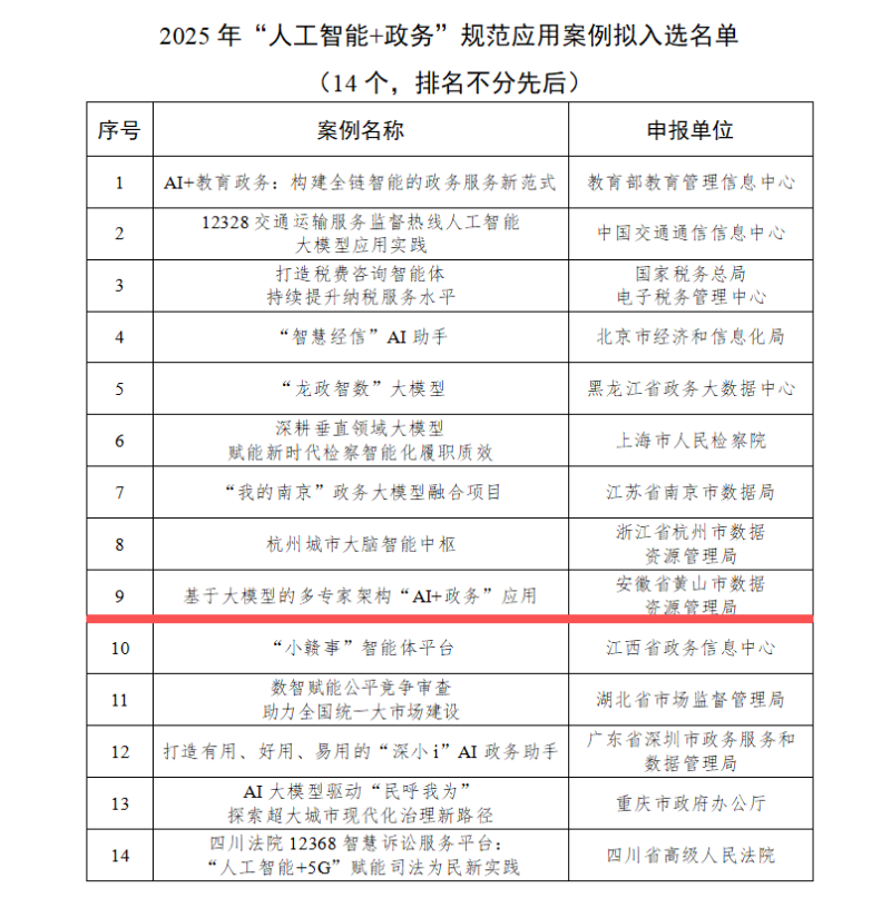 日前,中央網(wǎng)信辦信息化發(fā)展局指導(dǎo)、中國網(wǎng)絡(luò)社會組織聯(lián)合會組織評選2025年“人工智能+政務(wù)”規(guī)范應(yīng)用案例,黃山市“基于大模型的多專家架構(gòu)‘AI+政務(wù)’項(xiàng)目”成功入選,是我省唯一入選的“人工智能+政務(wù)”項(xiàng)目。2025年9月,黃山市“AI+政務(wù)”項(xiàng)目獲評2025世界制造業(yè)大會“安徽省信息化十件大事”。本次入選中央網(wǎng)信辦“人工智能+政務(wù)”規(guī)范應(yīng)用案例,標(biāo)志著黃山市“AI+政務(wù)”項(xiàng)目,已成為引領(lǐng)全國“人工智能+政務(wù)”項(xiàng)目的標(biāo)桿之一。