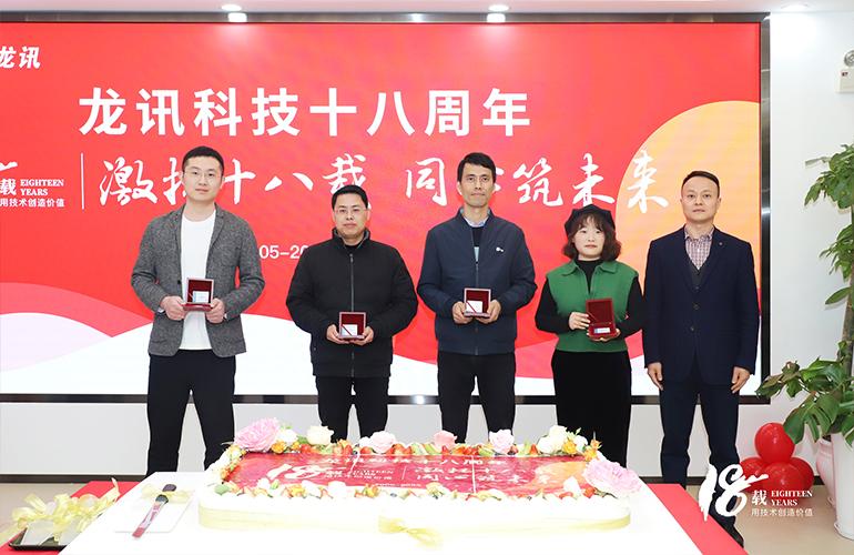 激揚十八載,同心筑未來。2023年3月25日,是公司成立十八周年的日子。一場溫馨而隆重的“生日會”,3月24日提前在總部展廳舉行,龍訊的家人們一起相聚慶祝。